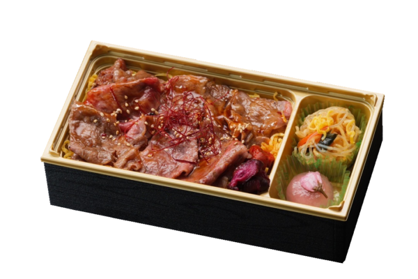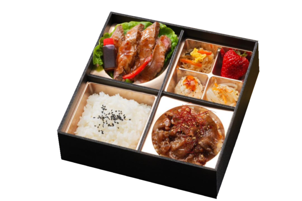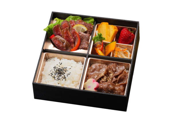 【内容】 特選黒毛和牛のステーキ・厚切りの牛塩タン・特選和牛のすき焼き重・季節のお惣菜 等