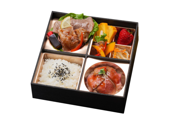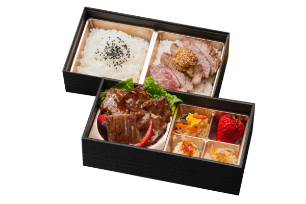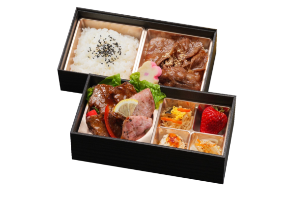 特選和牛の旨みを活かした焼肉と、赤身ステーキを絶妙な火加減でしっとり柔らかく焼き上げた贅沢な一折。肉の食べ応えと上品な味わいが調和し、大切なおもてなしや特別なひとときにふさわしい、満足感あふれるお弁当です。