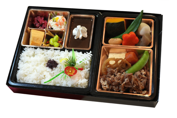 【内容】 牛めし・だし巻き・きんぴら・ポテトサラダ・たきあわせ 等