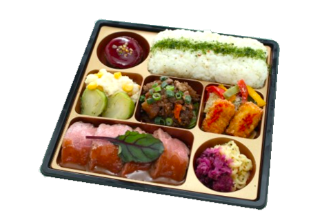 • 選りすぐり食材を厳選して作るこだわりのお弁当。仕入れの際に厳選した赤身ステーキは程よくサシが入り後味にいやみが無く、上品でとろける食感とコクのある味わいが特徴です。是非一度ご賞味下さい。