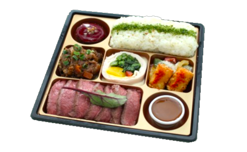 • 選りすぐり食材を厳選して作るこだわりのお弁当。仕入れの際に厳選した赤身ステーキは程よくサシが入り後味にいやみが無く、上品でとろける食感とコクのある味わいが特徴です。副菜も充実したお弁当、是非一度ご賞味下さい。