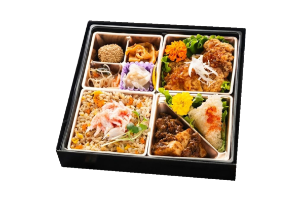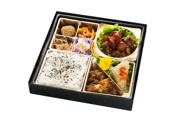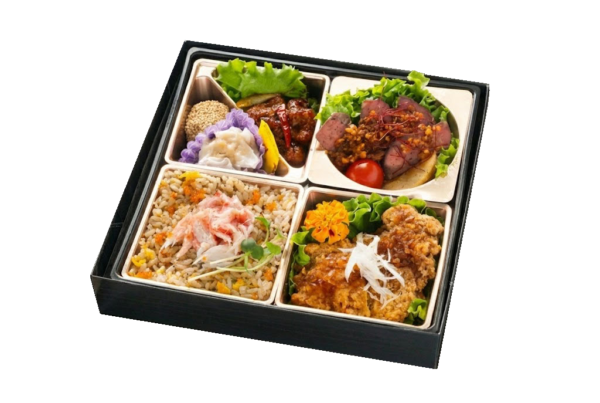 【内容】 紹興酒仕立ての角煮炒飯・黒毛牛ステーキXO醬ソース・中華副菜の2段重