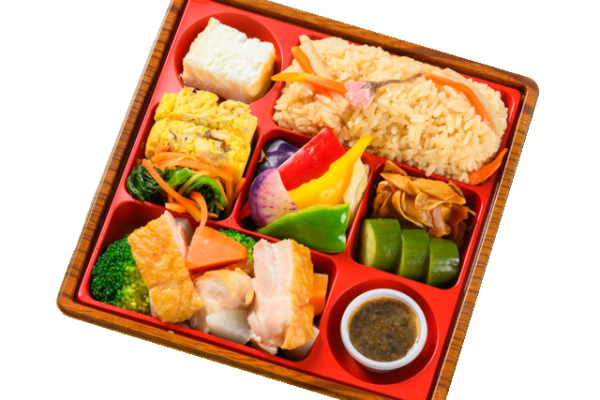 鶏肉とお野菜の幽庵焼きにシェフ特製海苔ソースをかけてお召し上がりください。お野菜をたくさん摂れる彩り豊かな和食弁当です。