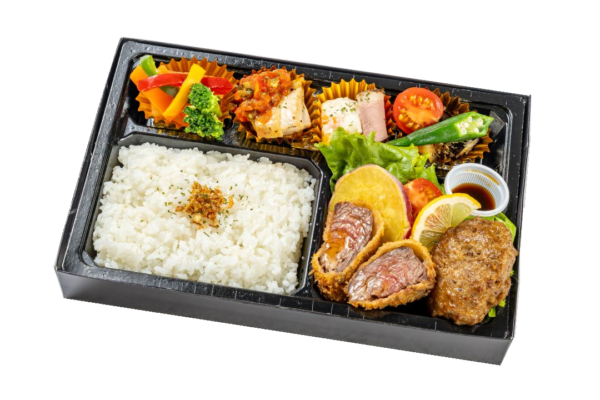 • A5ランクの黒毛和牛を贅沢に使用した、焼きしゃぶがメインのお弁当です。バランスのとれた、当店自信の商品です。