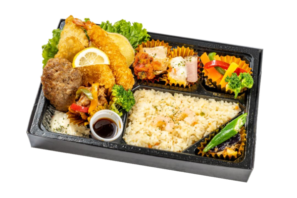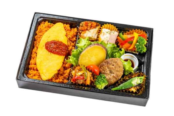 • 当店人気の特製オムライスのお弁当です。彩り豊かなおかずと一緒にお召し上がりください。