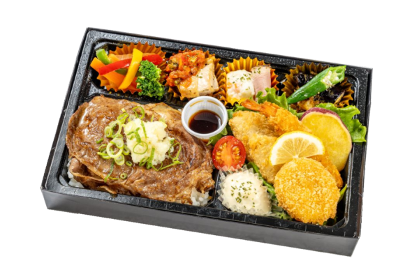 • オーナー自ら厳選した国産牛フィレ肉のステーキがたっぷり入った、ワンランク上のお弁当をお作りしました。