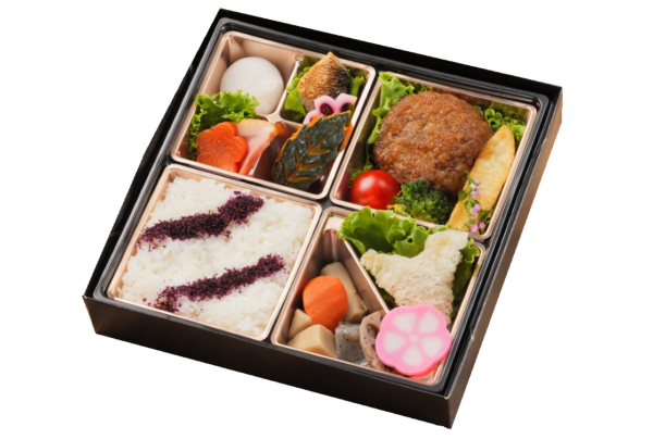 【内容】 黒毛和牛ハンバーグ・カモロース・焼き鯖・季節の炊き合わせ 等