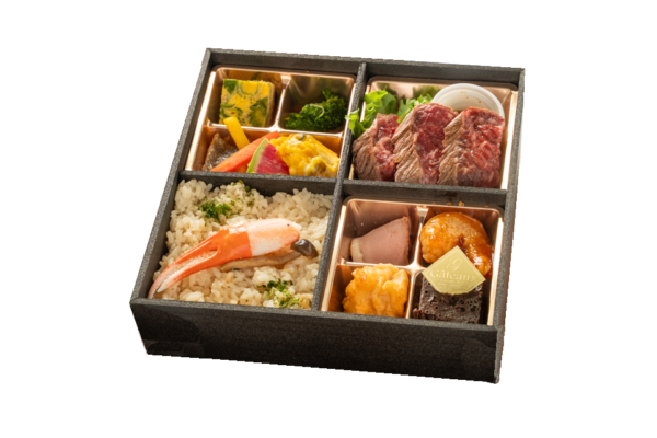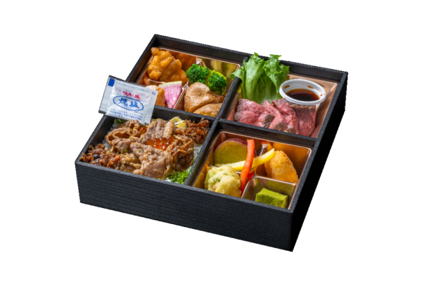 【内容】 厳選牛ステーキ重・熟成牛すき重・季節のお惣菜・甘味 等