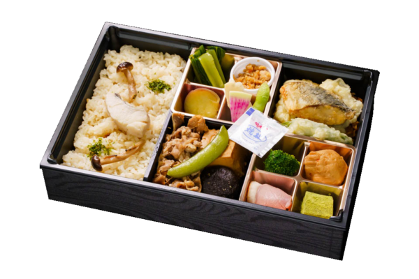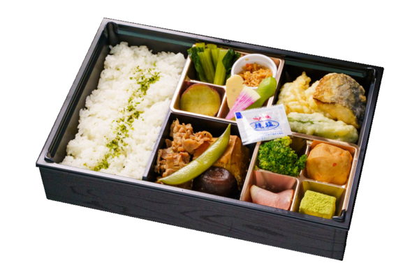 すき焼き、鯛めし、天ぷらが入った和食弁当。保冷剤をお付けしてお持ちします。