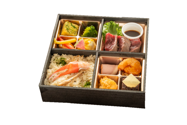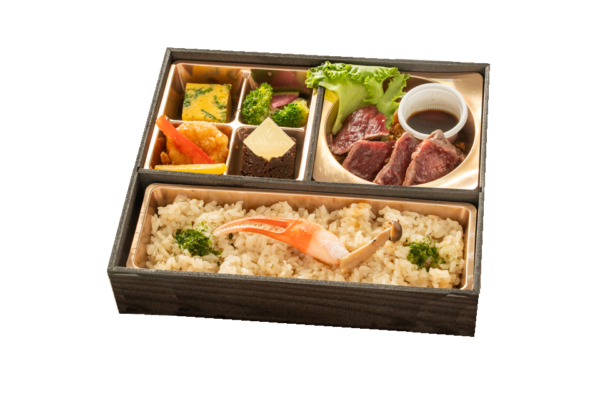 【内容】 厳選牛熟成ステーキ・ズワイガニご飯・季節のお惣菜 等