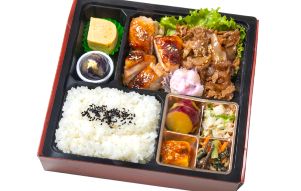【内容】 白米・焼肉・グリルチキン・季節のお惣菜6品 等