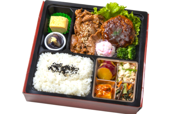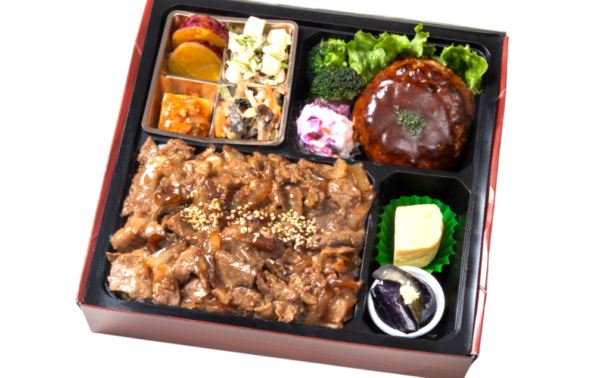 【内容】 白米・焼肉・ハンバーグ・季節のお惣菜6品 等