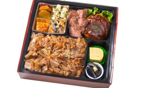 【内容】 白米・ステーキ・焼肉・季節のお惣菜6品 等