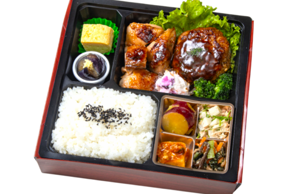 【内容】 白米・ハンバーグ・グリルチキン・季節のお惣菜6品 等