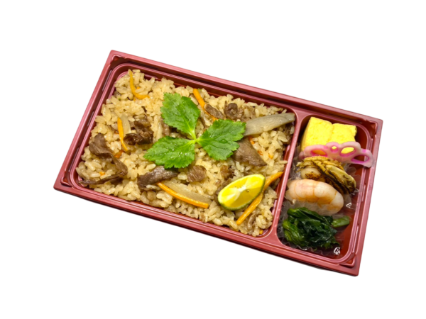 【内容】 牛ごぼう炊込み飯重・季節の惣菜※副菜の内容は季節によって変わります