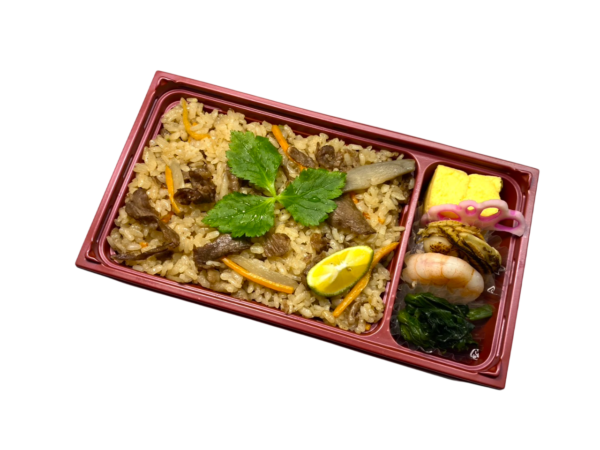 【内容】 牛ごぼう炊込み飯重・季節の惣菜