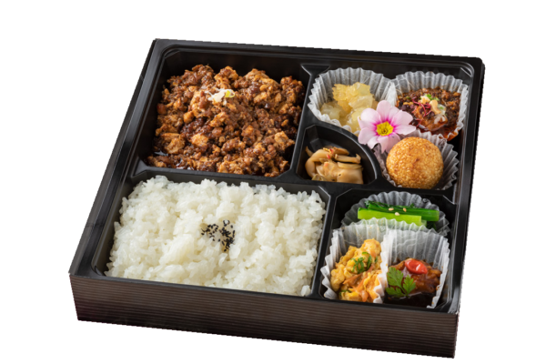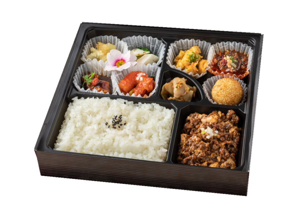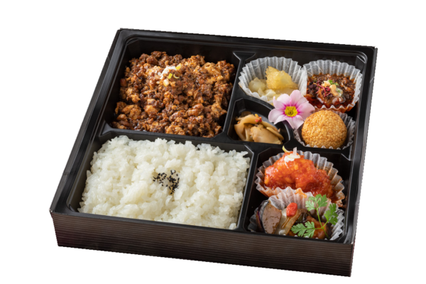 熊猫軒自慢の麻婆豆腐をメインにしたお弁当。メインのお料理とお米を活かす、お菜を入れております。