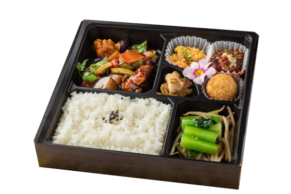 熊猫軒自慢の香醋の酢豚をメインにしたお弁当。メインのお料理とお米を活かす、お菜を入れております。