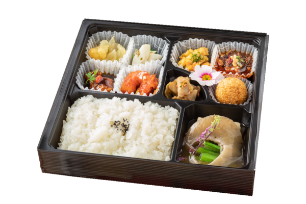 絶対に外さない熊猫弁当に、ミニフカヒレの姿煮と旬菜を添えて。冷めても濃厚なスープが食欲をそそります。1匹のミニフカヒレ、他では出せません。