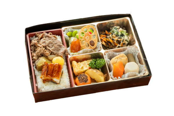 【内容】 鰻ご飯・ローストビーフ・季節の炊き合わせ・季節のお惣菜・甘味 等
