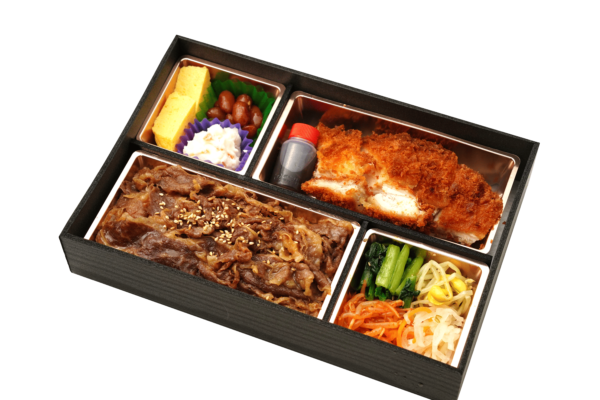 仙福自慢の牛焼肉と好評のハンバーグに加え、特製のチキンカツ重を詰め込んだボリューム満点な一品です。