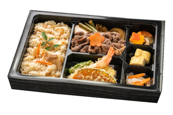 天ぷらとすき焼きどちらも楽しめ、ご飯の量が多いのでボリューム感のあるお弁当です。