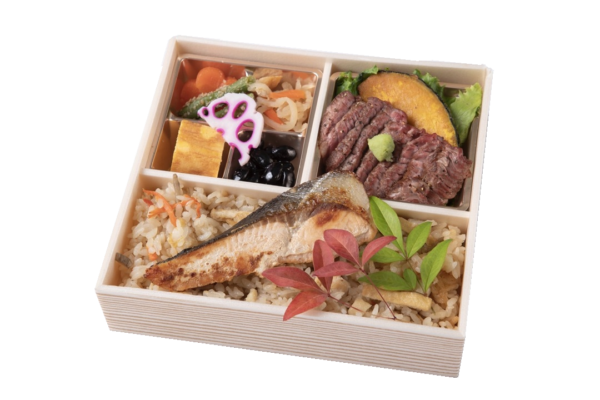 特上のフィレステーキ、出汁の効いた炊き込みご飯と、炊き合わせなどの副菜にまでこだわったお弁当です。柔らかくジューシーなフィレステーキを特製のソースでお楽しみください。