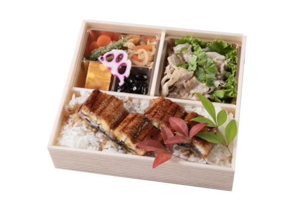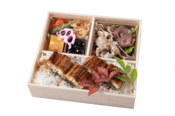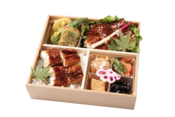 【内容】 鰻重・うなぎの蒲焼・季節の天ぷら・人参の煮物・いんげんの胡麻和え・黒豆・切干大根・酢蓮根・甘味 等