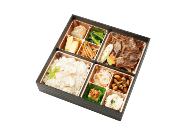 出汁が自慢の炊き込みご飯に、メインはご飯と相性抜群のてりやきチキン。8種類のこだわりのおかずも楽しめる豪華な内容となっています。 柔らかジューシーなてりやきチキンは一度食べると病みつきになる美味しさです。